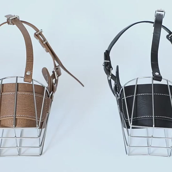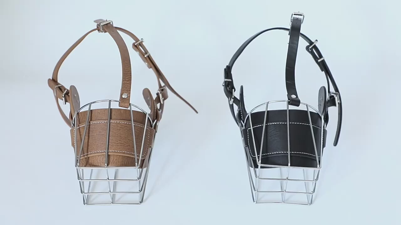 Muselière chien haute protection en acier inoxydable et cuir réglable